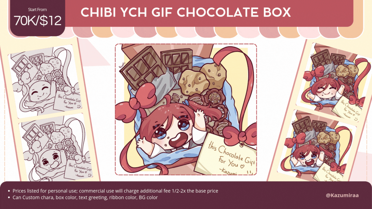 Will add additional fee for some situation (characters detailed, add attribute, etc)